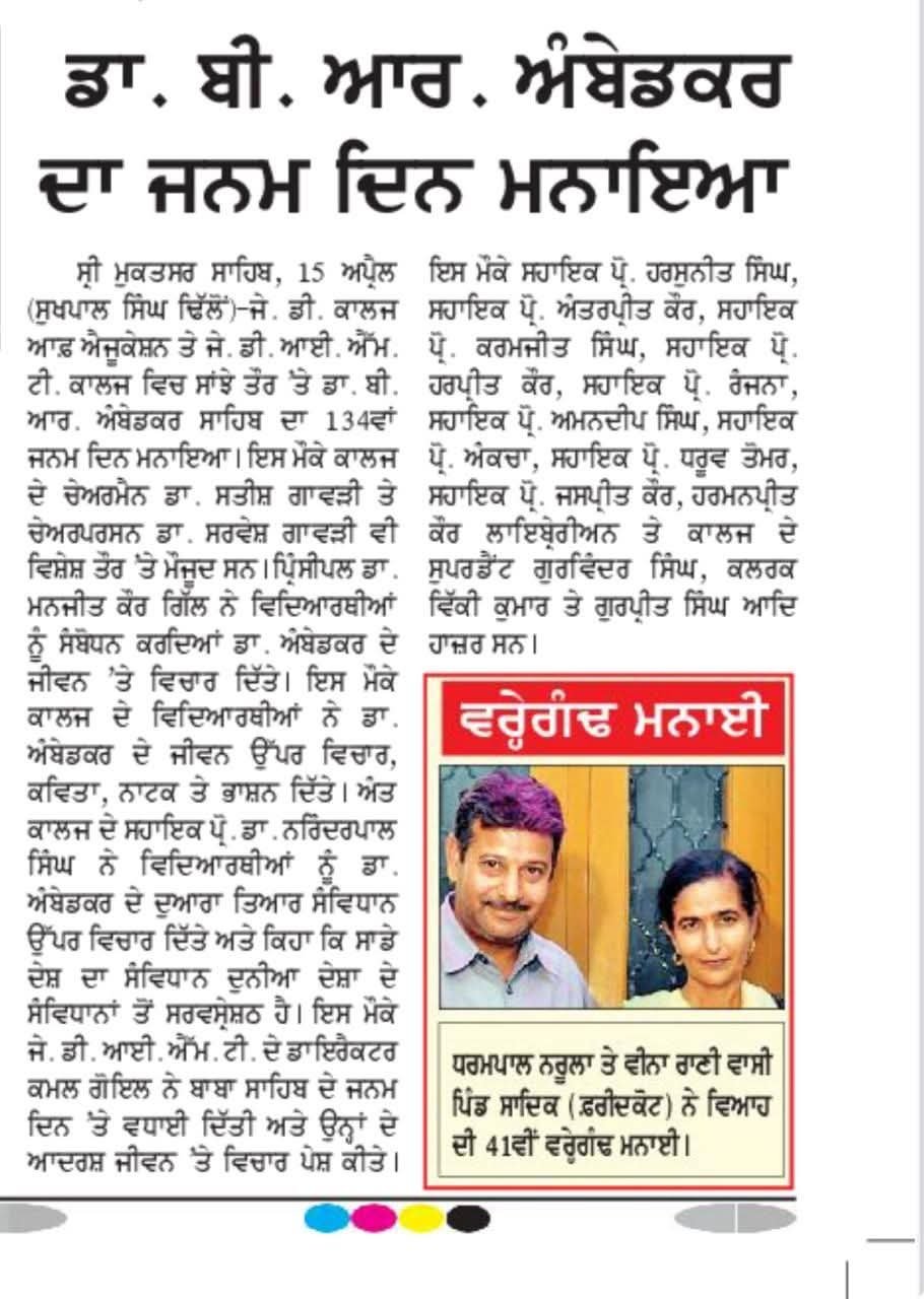 Dr. B. R. Ambedkar Birth Anniversary was celebrated in our college with great respect and enthusiasm. The program began with paying floral tribute to Dr. Ambedkar’s portrait. Students and faculty highlighted his invaluable contribution as the chief architect of the Indian Constitution and his lifelong struggle.